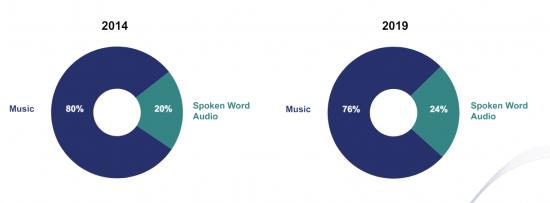 在国外,NPR和Edison Research的一项研究显示,2014到2019年这5年间,美国用户收听语言类音频的平均时长增加了20%,2019年,他们平均每天会花1小时收听语言类音频节目,包括新闻、体育和谈话类节目等内容;