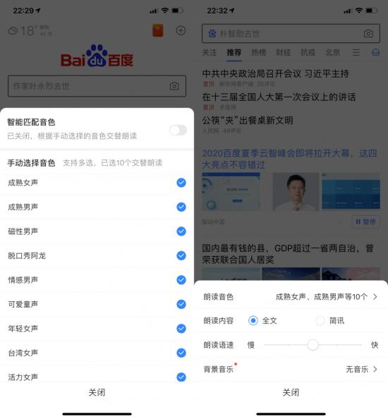 在这个背景下,百度APP看听模式的一个亮点功能——朗读时用户可以选择通篇朗读或者提取资讯中的核心进行播报——就更好理解了。