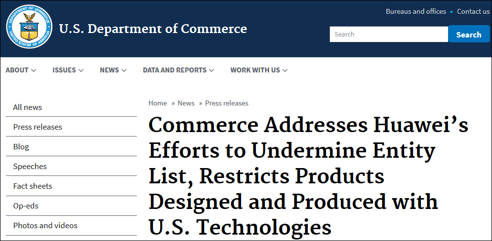 5月16日消息,美国东部当地时间5月15日,美国商务部对外发表声明称,将全面限制华为购买采用美国软件技术生产的半导体芯片,此外,即使是一些处于美国以外的公司,也受到该政策的影响。