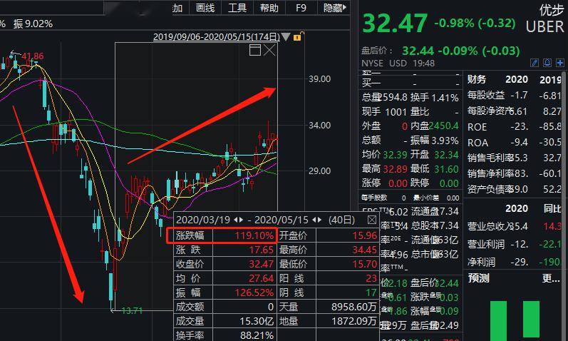 而从优步的股价来看,优步一季度一度从近42美元的高点跌至13.71美元,二季度则早已翻倍反弹。