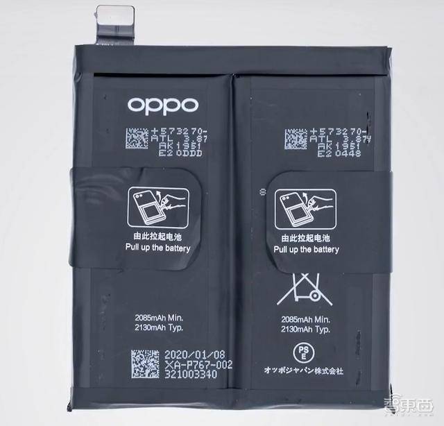 ▲OPPO Find X2 Pro电池拆解显示为“双电芯”结构