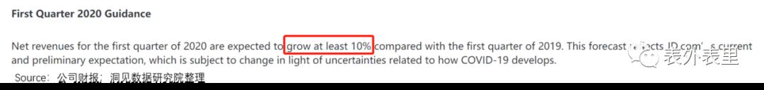 2019Q4电话会议中,京东管理层谨慎给出同比增长10%的预测。