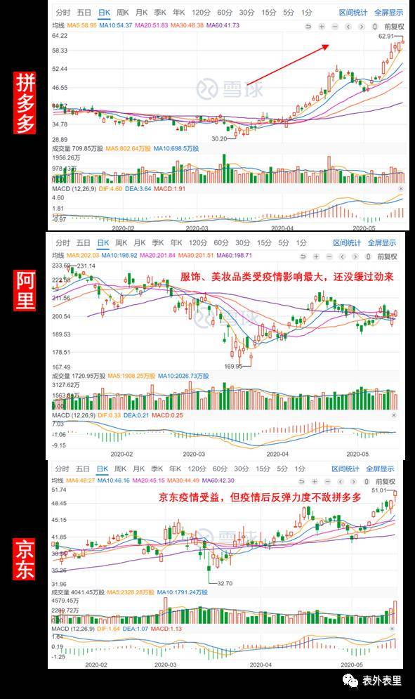 ③ 随着疫情的结束,可能出现消费降级的情况,京东的反弹力度,可能远逊于拼多多和阿里。