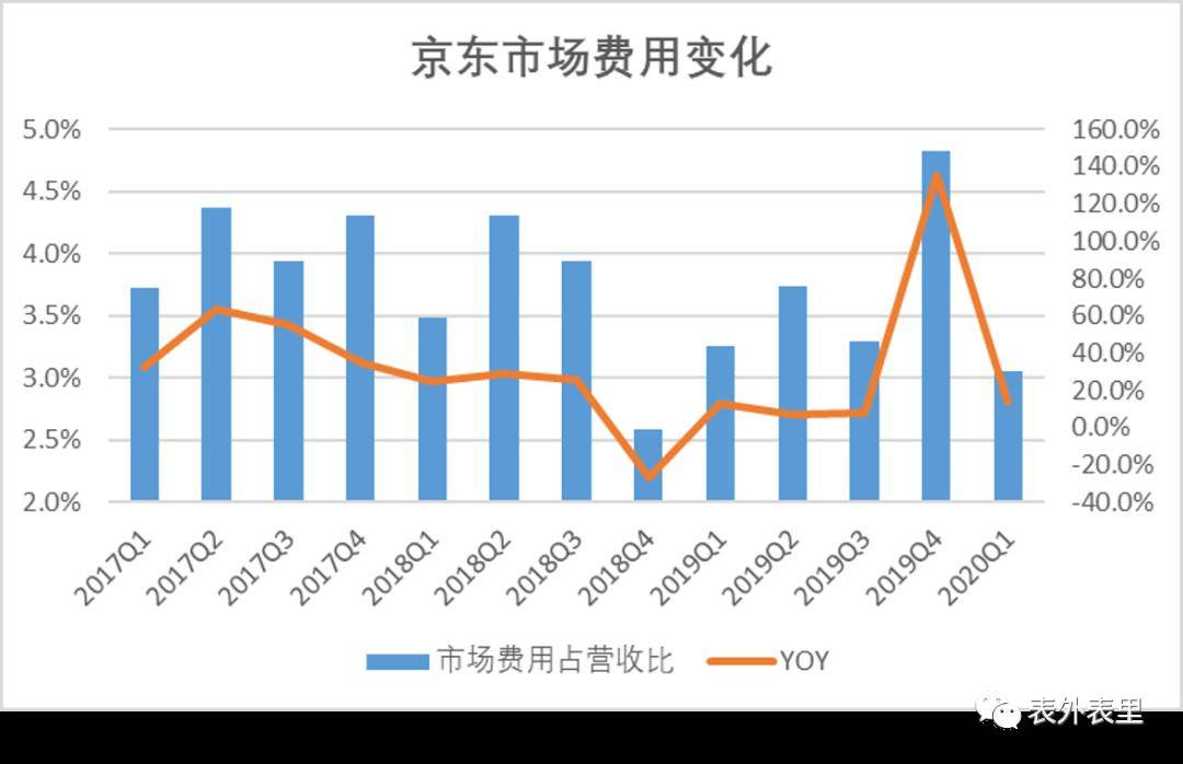 然而,疫情结束后,电商行业2019年的下沉战争还将继续,京东的“免费广告”不会一直有效,所以京东之后为继续下沉,很大可能会提高销售费用。(疫情期间,投放先暂停,疫情后其他家会加大,京东也会跟上)