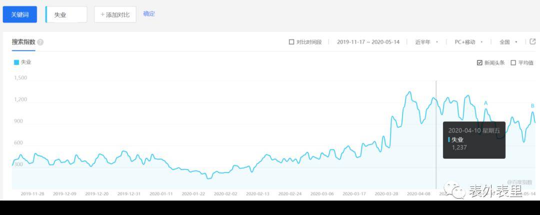 疫情期间,很多企业迟迟无法复工,对企业本身以及员工的收入会产生一定的压力。从百度搜索指数看,4月之后,“失业”关键词的热度明显提升了。