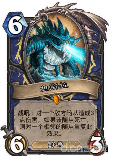变成6/5的身材之后,鱼斯拉这张随从更有橙卡该有的实力了,不至于太脆,现在释放完战吼效果后也具有一定的站场效果。