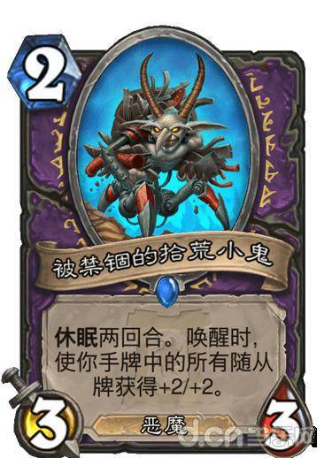 旧版:休眠两回合。唤醒时,使你手牌中的所有随从牌获得+2/+2。→新版:休眠两回合。唤醒时,使你手牌中的所有随从牌获得+2/+1。