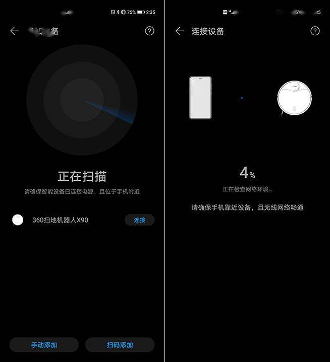 接下来则是连接配对的工作,对于华为或荣耀手机的用户而言,大部分机型中已预装了”智慧生活“应用,此时用户无需再安装第三方App即能快速连接这款扫地机器人使用。若是苹果iPhone用户,下载“360扫地机使用,至于其它Android品牌的机型,则是下载“智慧生活”App进行连接。