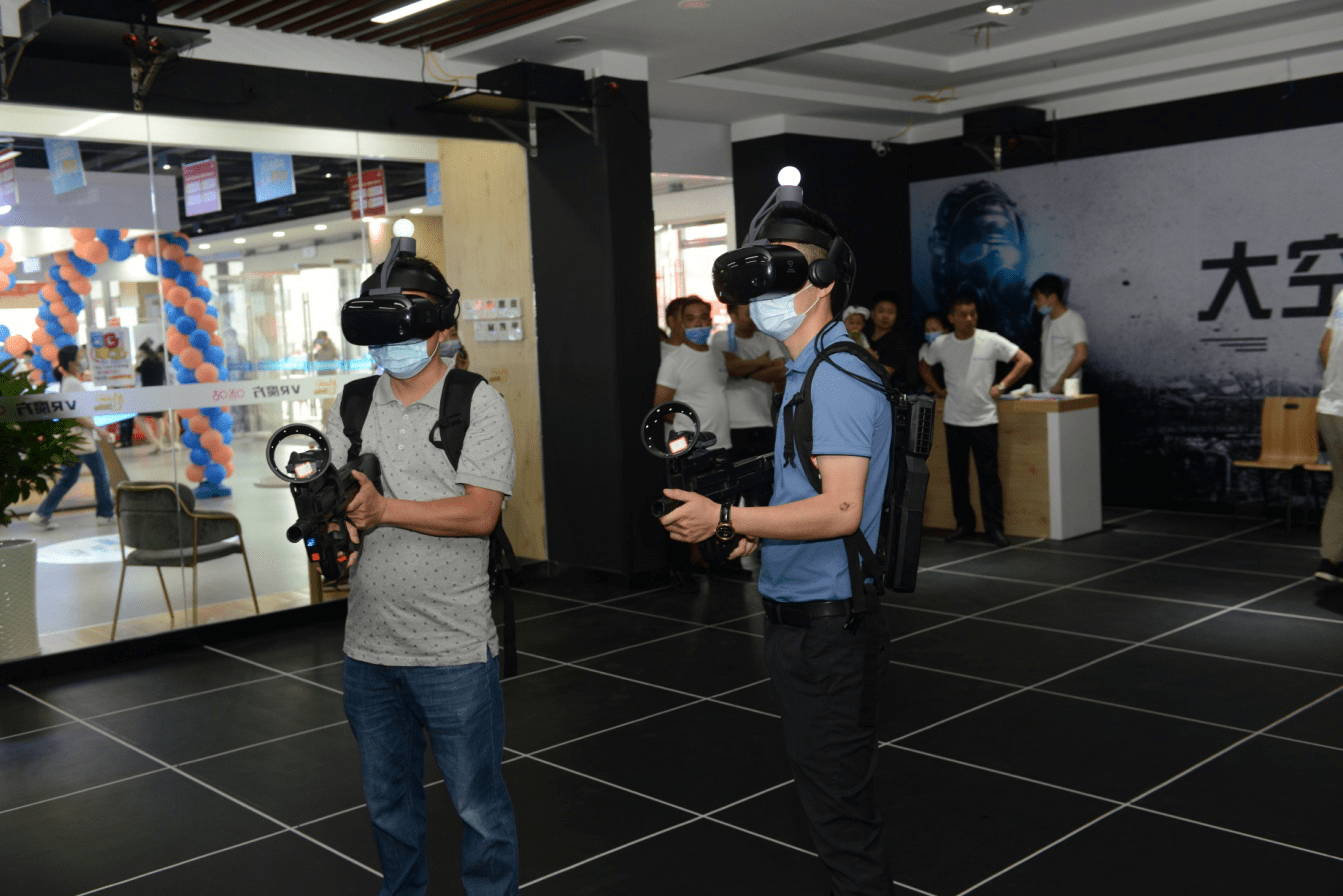 位于营业厅进门处的5GVR魔方体验区格外引人注目,体验区布置了4套5GVR游戏设备, VR游戏互动体验吸引了不少客户的兴趣。当天前来营业厅体验参观的2位客户戴上VR头盔,穿戴好体验区提供的全套专业电竞设备,免费尝鲜体验了一把《星际大乱斗》游戏。这是一款可以1v1或者2v2的PK对战型射击游戏,客户开局首选了一把手枪。“进入游戏画面给人第一印象特别像是守望先锋游戏的第一人称视角,画面逼真、代入感极强;枪械射击自带弹道,辅助瞄准,很容易执行简单的躲避、突击、肉搏等战术;初始自带盾牌、大招CD的设置也带来了丰富的游戏战术变化。”客户体验后激动地说道,现场工作人员还为客户体验了飞镖、武士剑等武器,“真的非常好玩,感觉自己就像是身临其境,回味无穷”完全仿真的游戏体验感受让客户激动不已。