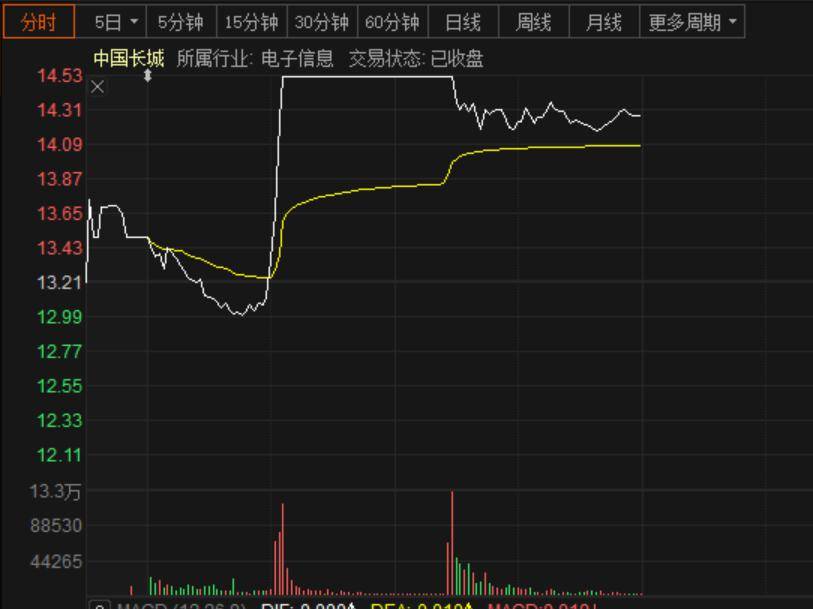 5月18日上午,中国长城股盘中一度封板,截至午盘收盘,股价收涨超8%。