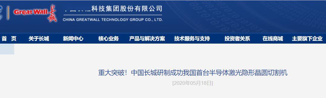 消息面上,中国长城官微显示,我国首台半导体激光隐形晶圆切割机于近日研制成功,填补国内空白,在关键性能参数上处于国际领先。我国半导体激光隐形晶圆切割技术取得实质性重大突破,相关装备依赖进口的局面将打破。