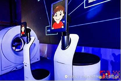 图:上海信息消费节开幕式暨云峰汇的主持人是飞马旅联合创始人袁岳以及一位特殊的主持人“达闼智能机器人”——“小达”