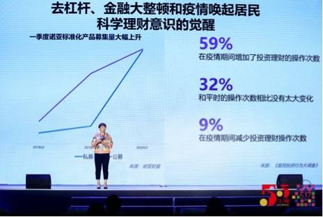 图:疫情唤醒了大家科学理财意识的觉醒,根据诺亚对客户统计,59%的人在疫情期间增加了投资理财的操作次数