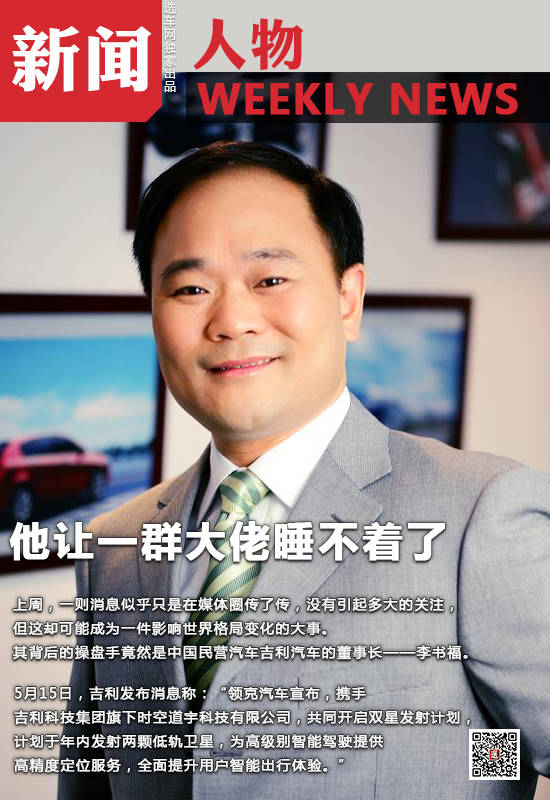李书福曾于2017年11月购买了美国Terrafugia飞行汽车公司,今年又开始玩卫星了,未来李书福的世界将是空、天、地一体的系统,完全超出了汽车的范畴,这在世界汽车史上还是第一人。每当世界经济跌入低谷的时候,总会因为新兴技术的出现将经济拉回正轨,李书福给我们留下了太大的想象空间,后续又当如何呢?如果说牟其中是一个历史印记,今天李书福留下的又会是什么印记呢?因此,我们选择李书福为本期一周新闻人物,并持续关注李书福空、天、地一体化发展的伟大事业。游戏网