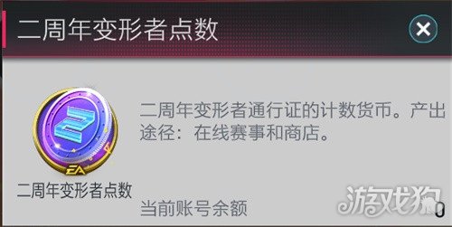 二周年变形者点数:通过二周年庆典章节获取,用来在二周年庆典章节兑换各类资源或球员。