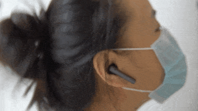 耳机的重量真的超乎想象,加上电池盒的重量就已经让我惊喜过一次了,没想到耳机的重量更令人惊喜,耳机本身就很轻,当佩戴耳机的时候几乎是没有什么感觉的,即使是长时间的佩戴,耳朵也不会有疼痛感。虽然它非常轻,但它和耳道的契合还是非常完美的,佩戴十分稳固,不会轻易掉落下来。
