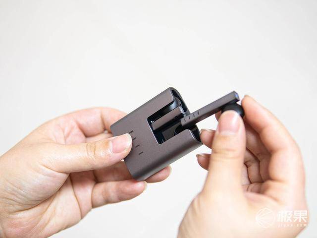 在取出耳机的时候也是很方便的,即使是单手也可以轻松搞定,只需要将大拇指的指腹向上轻轻推即可将耳机推出,当然双手取出就更加方便了。