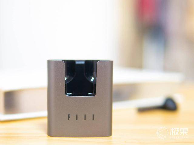 FIIL CC的开放式充电盒看起来像Zippo打火机的大小,银色金属略带一点喷砂的质感,看上去更具时尚、科技感。这种类似金属的材质要比工程塑料的耳机强上太多,不仅手感好,看起来也宛如工艺品一般,将它放在书桌或者办公桌上面,也可以是一件很漂亮的装饰品。