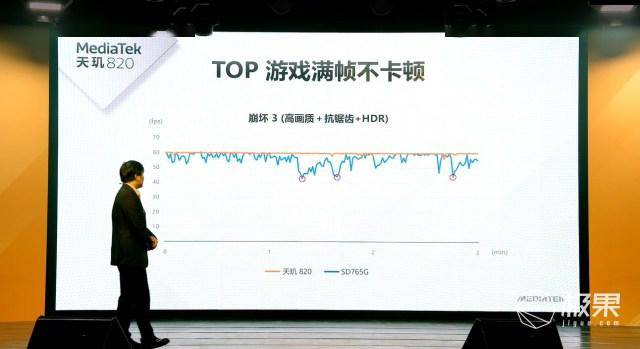 跑分核性能实测部分,联发科则是全程对标高通765G。给出的CPU部分单核、多核,以及整个GPU跑分,都比竞品更强。其中单核性能Geekbench 4.2跑分比高通765G高了7%,多核高了37%,GPU跑分则是高了33%。真机的应用冷启动速度,和游戏帧数稳定度,看上去也都相当漂亮。