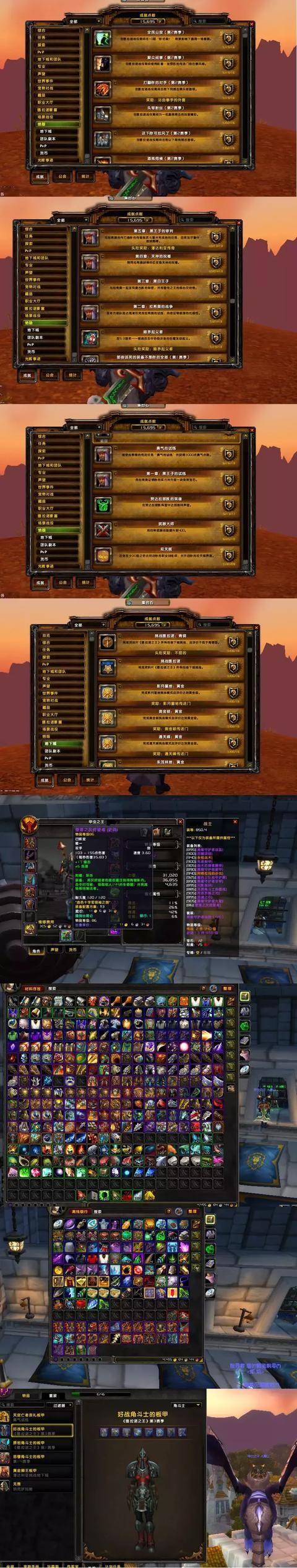 从截图中我们可以看到,这个账号拥有WOW60年代,乃至现在为止最经典的一把武器,堕落的灰烬使者。这把武器是旧版的NAXX天启四骑士掉落,不仅拥有极为传奇的故事,佩戴后更有华丽特效,全身变黑,并会有低语常伴耳边。全魔兽传说坐骑—黑色其拉作战坦克!更拥有战神的标志—无畏9件全部T3套装,以及曾经NAXX强武器—米奈希尔之锤。各种稀有坐骑,精锐幻化也是应有尽有,更有辉煌暴君和原始胜利绝版幻象。