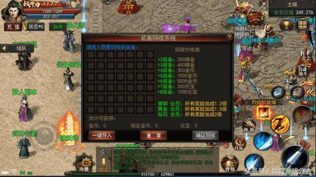 ▌建议:对于充值玩家建议先弄龙珠和坐骑,这两个相对其他物品比较保值,加成也很高,散人玩家可以先打装备到+8套,从小怪打起,前期道士比较强,战士相对打装备弱,需要强化技能才能突出优势!中后期还是法师和战士!