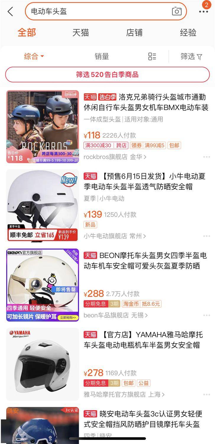 IT之家在电商平台淘宝搜索,排列在最前面的头盔产品基本上都是百元以上,只有少部分电动车头盔售价在百元以下。