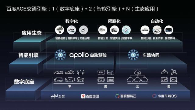 在智能交通领域,借"新基建"东风,Apollo迎来爆发式增长。4月9日,Apollo正式对外发布国内外首个车路行融合的全栈式智能交通解决方案 "ACE交通引擎",该方案基于自动驾驶和车路协同两大技术引擎,顶层可以驱动包括智能信控、智能停车、交通治理、智能公交、智能货运、智能车联、智能出租、自主泊车和园区物种等在内的终端应用。目前,"ACE交通引擎"已经在北京、长沙、沧州等十余城市落地实践中。