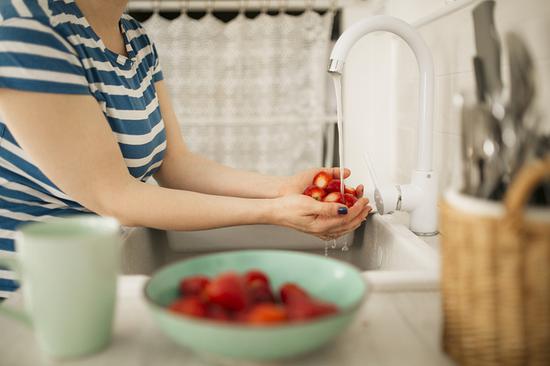 ①果蔬在流动的水下用手搓洗30秒以上,清洗时的机械运动回带走大部分农残留,加小苏打能增加去污效果。