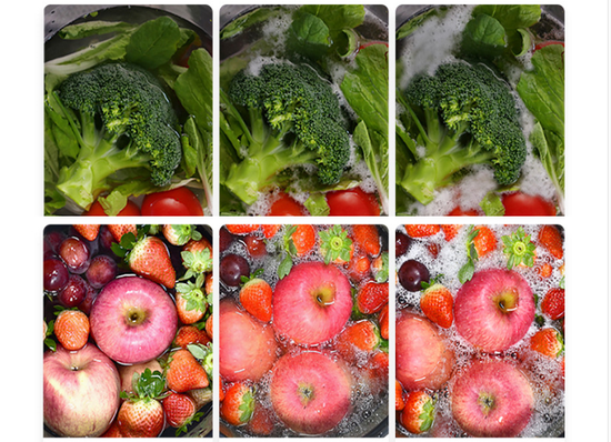 在正压区,气泡迅速增大然后闭合,产生冲击波,使其周围产生高温和超过1000个大气压,破坏不溶性污物使他们分散在清洗液中,从而达到清洗作用。但是比如像葡萄,草莓等表皮脆弱的水果,超声波清洗可能导致水果表层破裂,有农药内渗的隐患。而且实际上,家用的果蔬清洗机功率较低、作用时间段,在清洗一些农药吸附较深的果蔬时,效果会大打折扣。