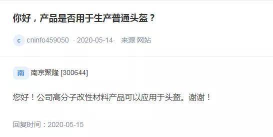 截至午间收盘,头盔概念股国立科技、南京聚隆涨停,伊之密、拓斯达、三夫户外、际华集团等集体大涨。国立科技主要产品为EVA/TPR环保材料及其制品、改性工程塑料等。南京聚隆日前在互动平台上表示,公司高分子改性材料产品可以应用于头盔。