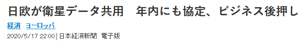 据日本经济新闻5月17日报道,日本政府和欧盟计划在2020年内签署能够相互使用人造卫星数据的合作协定。