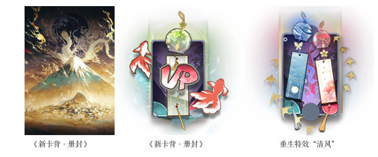 此外,游览卡还会送出新卡背·册封以及全新式神升级特效“灵动”和重生特效“清风”,收集控们可不要错过了!式神升级特效将会在式神升级时浮现两条游弋的金鱼,滑过以卡面为池塘的水面,煞是好看;以及重生特效清风,会有红蓝两枚可爱的、嵌着铃铛的御守闪烁,并飞过两行金色的大雁,颇具诗情画意。