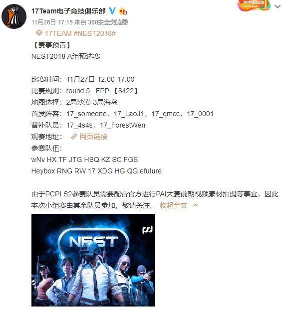 原标题:气人主播QQQ:NEST绝地求生开打,众星云集17、211、XDD全员刚枪