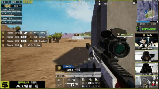 Tianba 领域在循环周第四周第一场时,领域单人站在高点,面对YQL与DKG的混战,掏出SKS,连续淘汰YQL以及DKG队员,成功守护了自己的领域,击溃敌人,在随后的决赛圈中,Tianba更是面对XQF,SMG两大猛男战队,领域一雷双响,击杀jimmy和Paraboy,随后绕后击杀SMG Monet为队友打开突破口,向所有人证明有有领域在的决赛圈,没人能轻松拿到蛋糕。