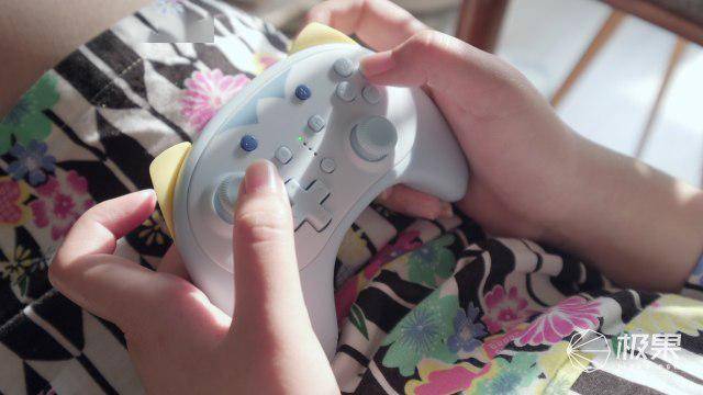 NS掌机,女生长时间拿着还是挺重的,通过HDMI把游戏机接到激光电视上,换一个舒适小巧可爱的手柄,开启大银幕连肝五天的愉快旅程。