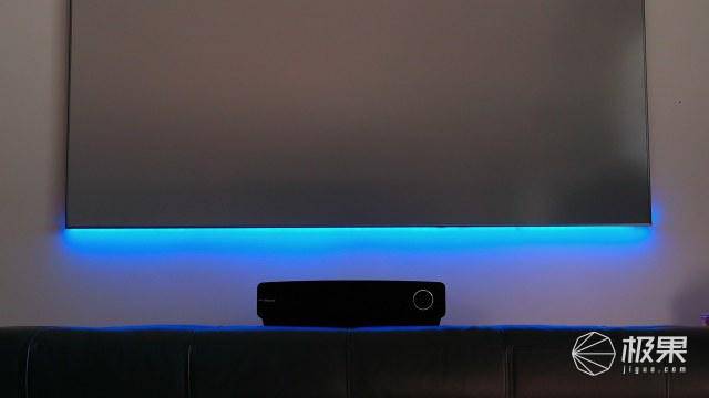 屏幕背后粘了6米智能LED灯带,日常可以单独作为漫反射氛围光,智能灯带可以联动智能家居,人体感应器开灯,定时开关灯都可以做到。