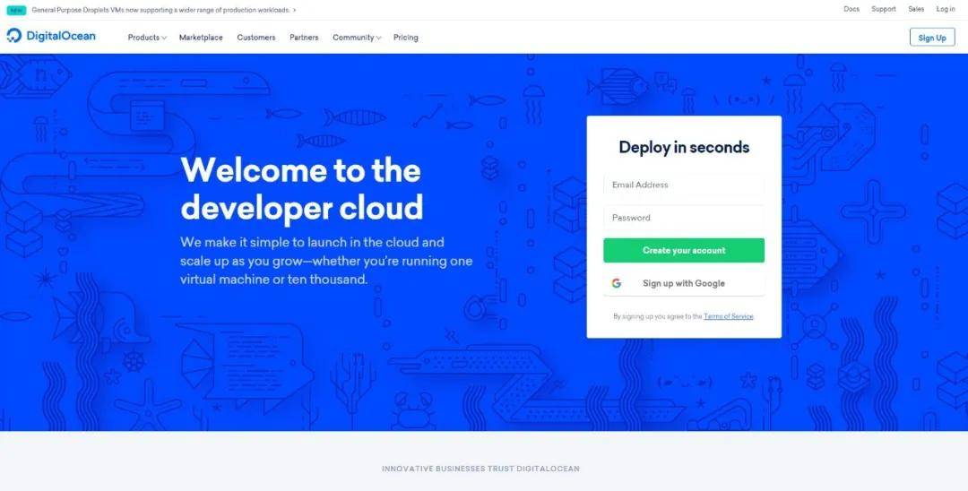 DigitalOcean还推出了一项非常便捷的“droplets(水滴)”服务,可以按小时计来为用户提供计算和存储服务。目前,该公司已经在上万台服务器上部署了超过600万个水滴云服务,服务的程序员数量超过50万人。