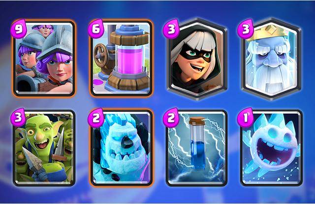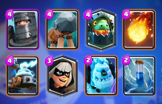 黑骑、刺客、攻城槌,经典的老三样,可一起怼一路,也能分路进攻让对手疲于奔命。关键时刻配合一发预判火球,更能将对手的心态打崩。而电车、冰人和地狱龙的铁三角,则可以处理多种进攻套路,将自己ALL IN的风险降到最低。