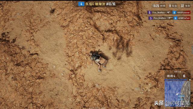 在蓝白圈的时候,4AM选择徒步进圈,韦神先被VC的夏天给打倒并直接补掉,孤存一枪放倒一个,但位置被Fire发现,孤存和永远直接被Fire打掉,4AM淘汰。说实话,4AM上一把的圈运还算可以,但是自己没有抓住机会运营好,而这把的圈运就真的是天谴了,一直在吃电转移的路上,到灭队都没有成功进到安全的位置,更不用说拿到击杀人头什么的了,所以4AM这把的游戏体验可以算是很差了。其实,如果一开始转移的时候不去吃电绕圈,而是直接直线进去,即使很早被灭队,但说不定还能拿到几个击杀分,毕竟一开始跳的中心点,直线进圈还是不远的。