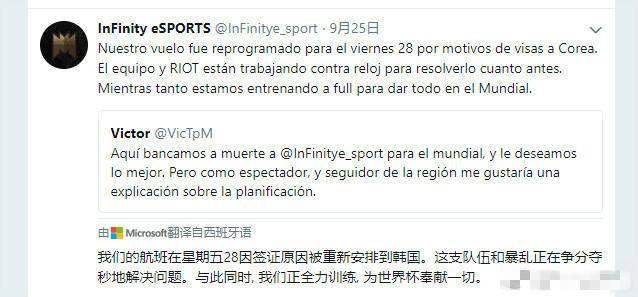 此次S8世界总决赛,拉丁美洲北部代表队伍INF于昨日表示,由于签证问题,他们不得不放弃原定于28日出发的航班。作为揭幕战的参赛队伍,他们所剩的时间已经不多,但是他们正在与拳头的工作人员一同全力解决这一问题。现在他们正在基地自行调整时差,而基地与韩国之间,有着14个小时的时差。