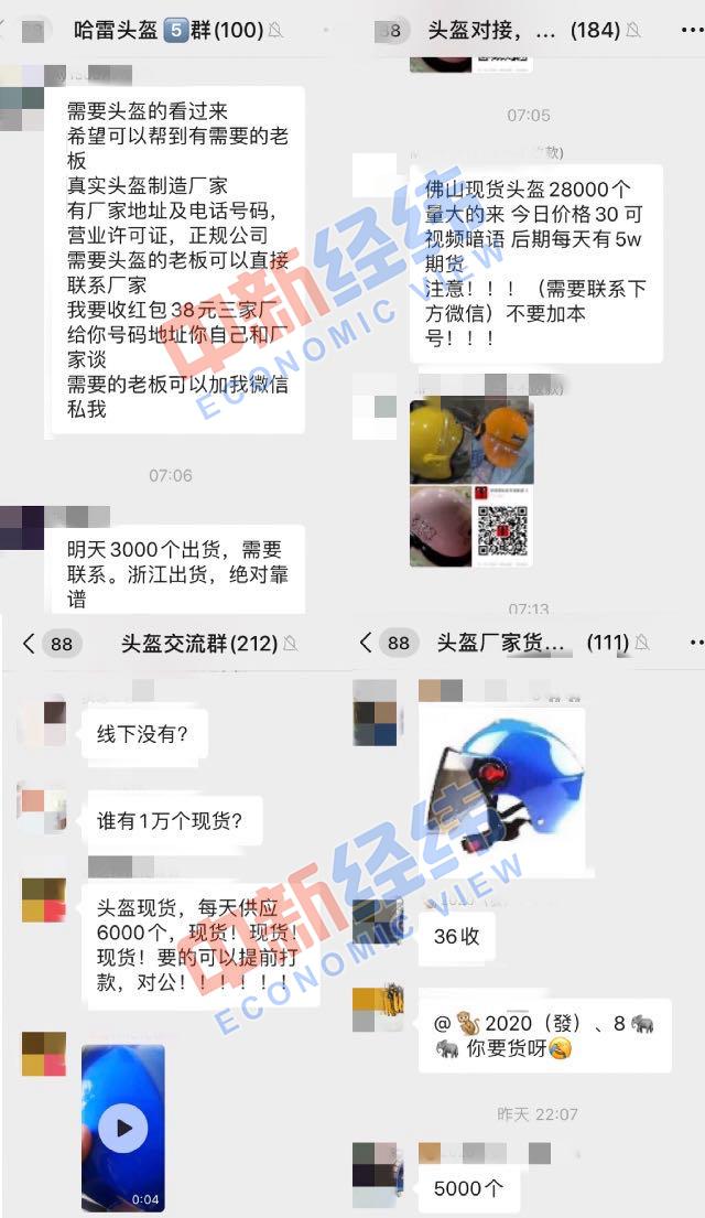 如今,“倒爷”转战头盔市场,一出类似的“剧本”开始上演。中新经纬记者所在的多个头盔交易群显示,声称手握数万个头盔现货的卖家不在少数,也不时有新入群的买家询问货源。为确保自己的货源真实可信,不少卖家愿意提供暗语视频、资质、合同。