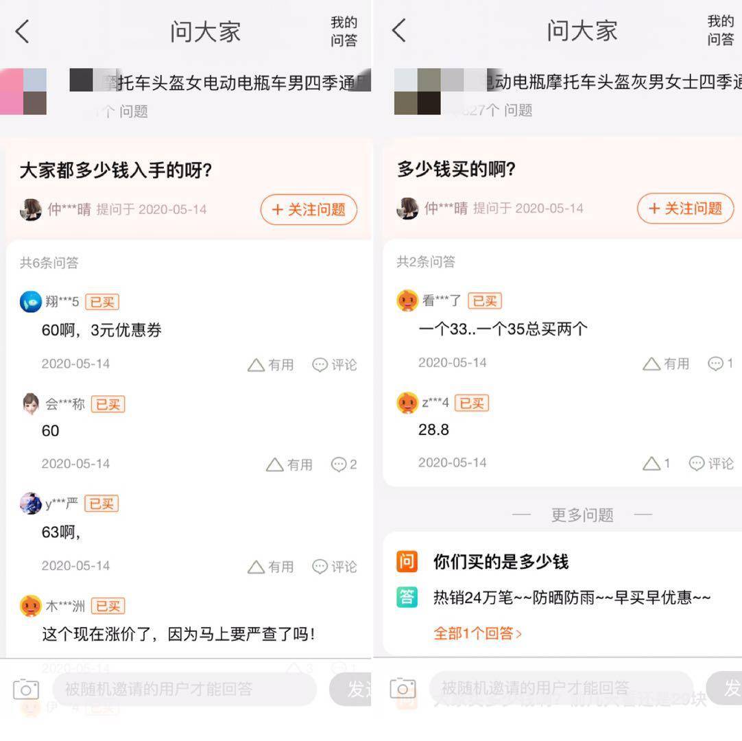同时,黄磊也提到,对于商家来说,电商平台的售价提升也有自己的无奈。“现在一下子市场缺口很大,本身头盔的存货有限。部分商家抬高定价可能是无奈之举,为了限制购买人群,因为轻易下架商品自己店铺的信誉值也会受到影响。”