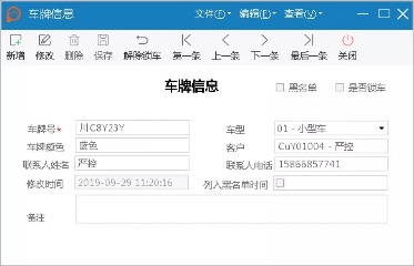 车牌信息档案管理,提供新增、修改车牌信息功能,车牌信息包含相关的车型以及人员信息。通过车牌信息一览表,可点击操作菜单进行新增、修改、删除、解除锁车操作。
