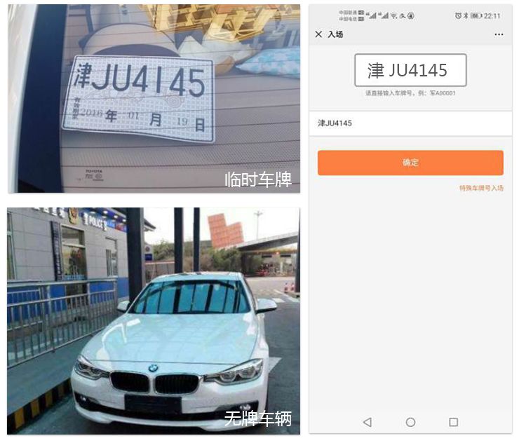 部分特殊车牌如无牌车、临时牌车由于其无法通过车牌的智能识别来进行入场,因此极致停车提供了扫码入场的功能来实现无牌车等特殊车牌的自助入场,车场开行车辆到入口只需要扫码并输入任意车牌号即可进行入场。