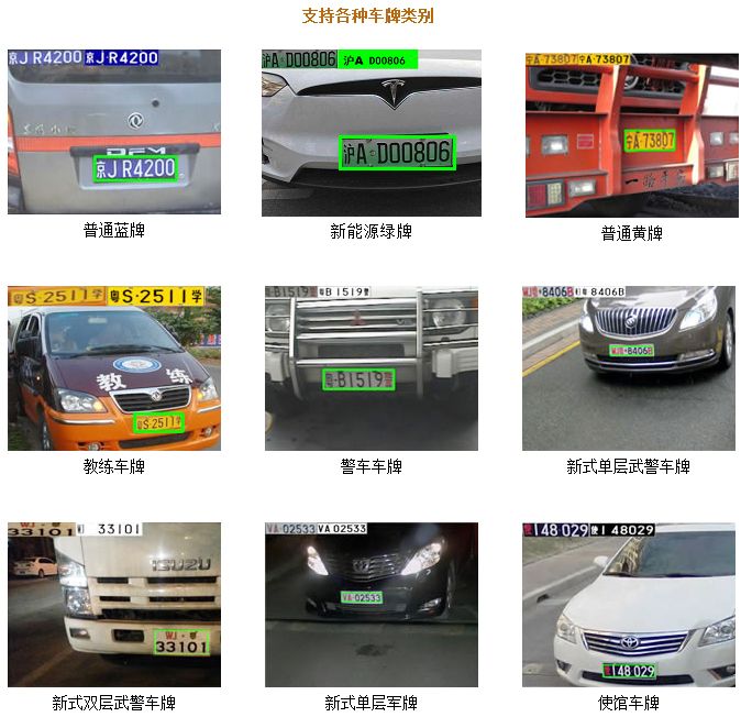 极致智能停车系统支持普通蓝牌,新能源绿牌、军警车牌、普通黄牌等多种车牌识别。