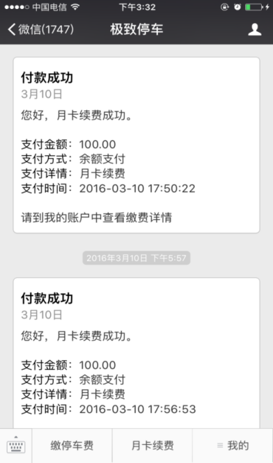 车主无需到物业管理中心进行月卡的费用续缴,只需要通过极致社区微信公众号、极致社区APP就可以来实现自助月卡续费,极大的方便了车主也减少了物业财务人员的工作量,及时的提高了月卡费用的收缴率。