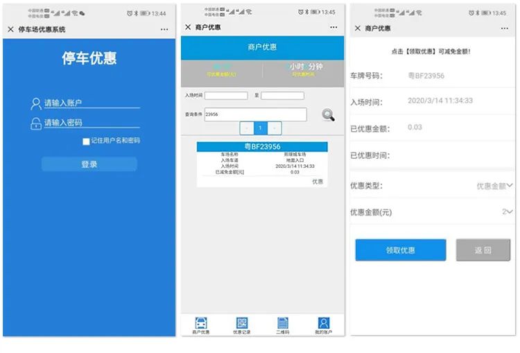 针对有硬件设备条件的商户,提供了PC端登录商户优惠系统,商户登录停车场优惠系统后,根据车牌和卡号查询在场车辆,对在场临时车辆(或过期月卡车)停车费用进行优惠,目前系统支持优惠金额和全免金额2种优惠模式,极大的方便了商户与车主。