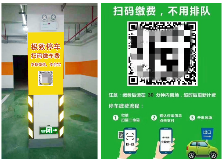 车主可以通过手机扫车场内粘贴的缴费二维码,缴费完成后,车辆可在出口处自动识别车牌号,系统自动放行开闸。