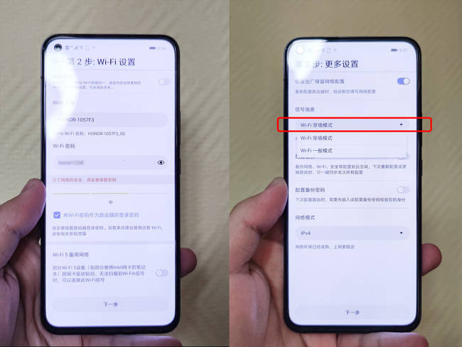设备支持上网方式(PPPoE/DHCP)的自动学习。无需拨号的同学设置好Wi-Fi名称与密码就可以直接下一步选择Wi-Fi模式细节设置了,这里建议大家信号强度都设置为「Wi-Fi穿墙模式」,可以获得更好的网络覆盖。