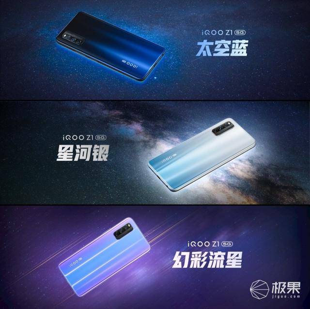 配色方面,iQOO Z1 5G拥有3种配色,分别是太空蓝,星河银,幻彩流星。
